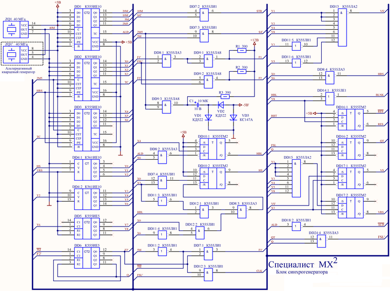 ZQ1 (ZQ2 ) 40 . : CLK - Z80, F1 F2 - 58080. : S/C - , STB - . : VS - HS - . DD9.3, C1, R3, VD1...VD3 -5 12 , 58080. DD16.2, DD6, DD12.3, DD24.4 2/2,5 . XP12.15. / "0" "1" .